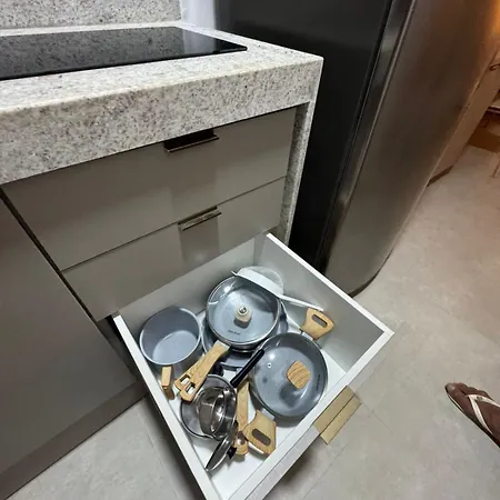 Guests can make use of a fully equipped kitchen in this apartment to whip up a tasty homemade meal.